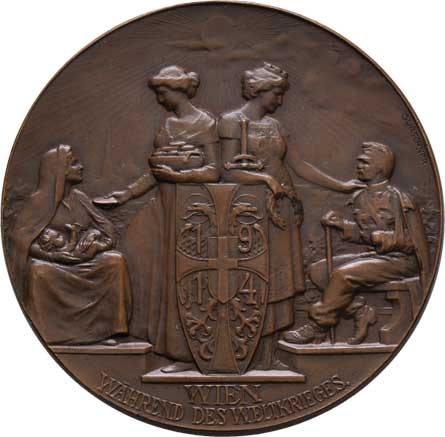 zprava, německý opis / městský znak, vročení, německý opis, Nesign., mosaz 37 mm s raženým ouškem a stužkou |