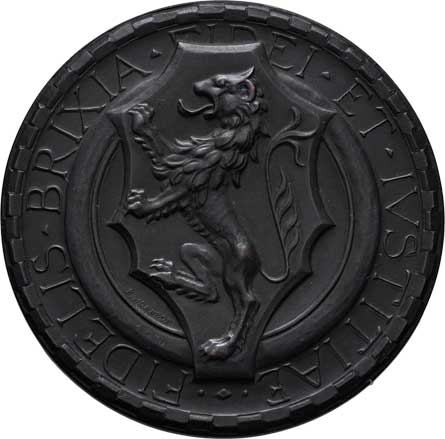 píše na kruhovou tabulku, opis / lev v kartuši, opis, Sign. S.Jorneon, měď 52mm, 48.063g, černá patina |