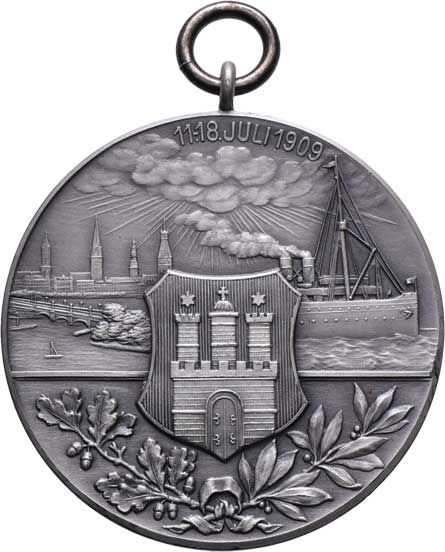 města, hansovní loď, nápis / znak, město, nová loď, věnec, vročení, Ag950, 40mm, 25.436g, původní závěs |
