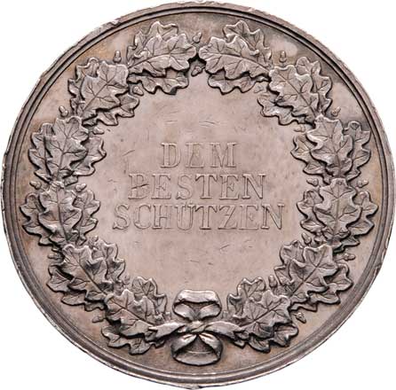 3-řádkový nápis ve věnci (nejlepšímu střelci), Sign. Pfeuffer, Nepunc., Ag 35mm, 21.782g, hr., rys., pat. |