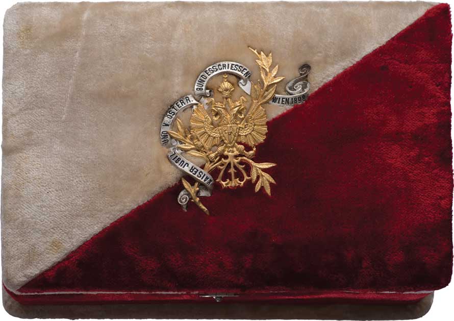 | 1198. | Vídeň 1898 - cena pro střelce - čeveno-bílá sametová