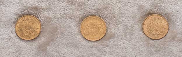 etue s věnováním a 3 rakouské desetikoruny, 1897, 1897, 1893 KB, nep.hr., nep.rysky, patina RR! |