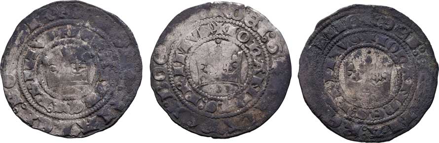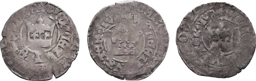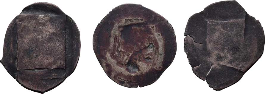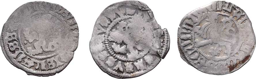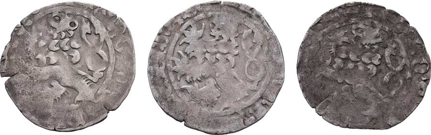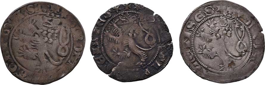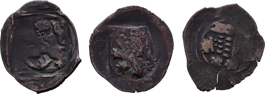 1x s tečkou pod lvem, 1x olámaný okraj, nedor., skvrnky, patina 3ks |