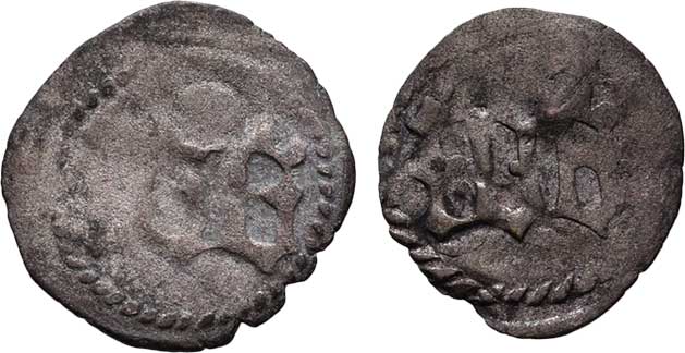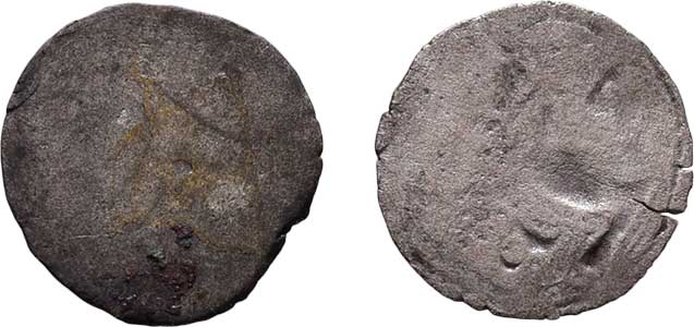 Kop. a Fried. uvádí podob. ražbu, ale s opisy na obou stranách, 0.213g, exc., nedor., pěkná patina R! |