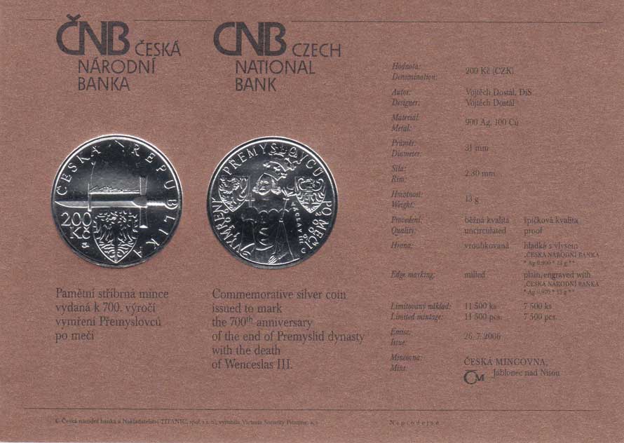 | 1711. | 200 Koruna 2006 - 700 let vymření Přemyslovců, KM.84