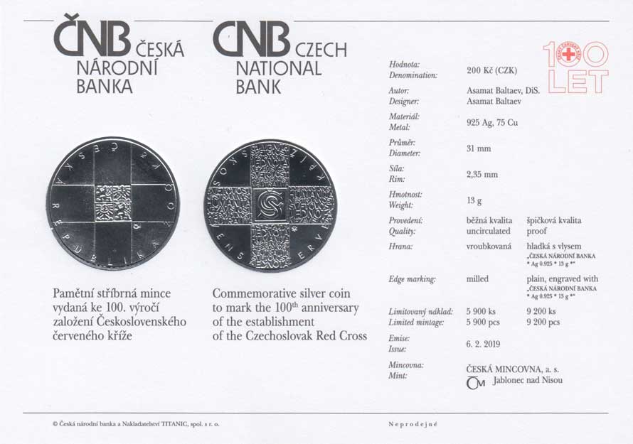 | 1724. | 200 Koruna 2019 - 100 let založení Čsl. červeného