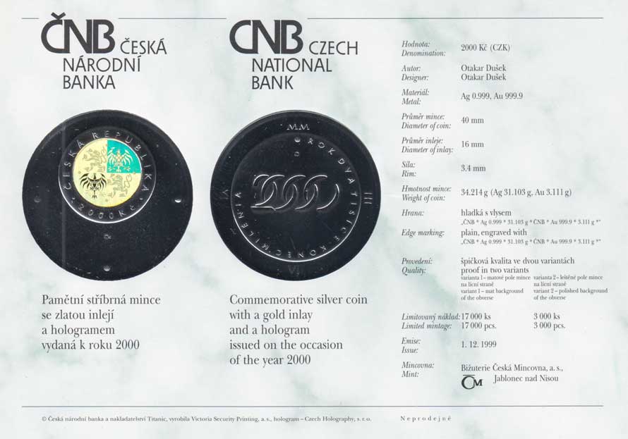 kříže (Ag925, 13.0g, 9.200 ks), kapsle, etue, karta |