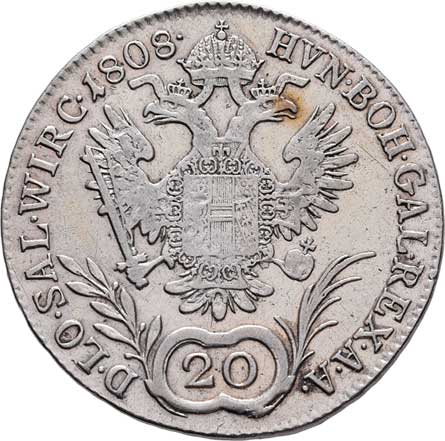 | 1782. | 20 Krejcar 1808 A, Vídeň, 6.590g, nep.hr., nep.rysky,