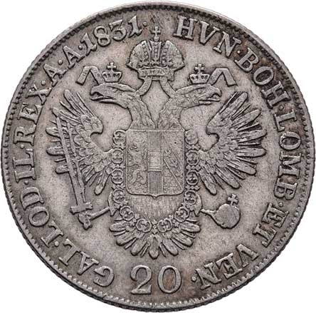 | 1789. | 20 Krejcar 1831 A - stuhy volně vlající, Vídeň,