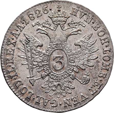 | 1792. | 3 Krejcar 1826 A, Vídeň, 1.638g, nep.rysky, pěkná