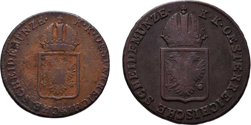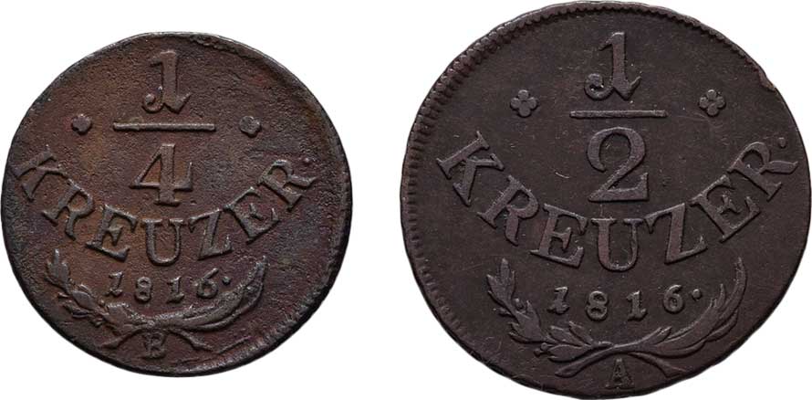 | 1794. | Cu 1/2 Krejcar 1816 A, Vídeň, 1/4 Krejcar 1816 B,