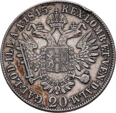 | 1797. | 20 Krejcar 1845 A, Vídeň, 6.650g, velké hrany,