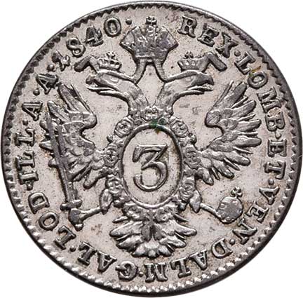 | 1798. | 3 Krejcar 1840 A, Vídeň, 1.685g, nep.hr., vl.rysky,