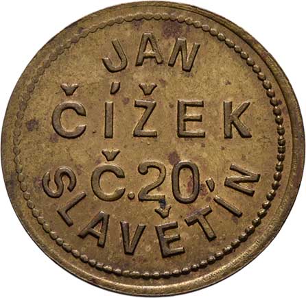 | 2902. | Slavětín č.20 - Jan Čížek - 1/4, CL.1286, mosaz 21mm,