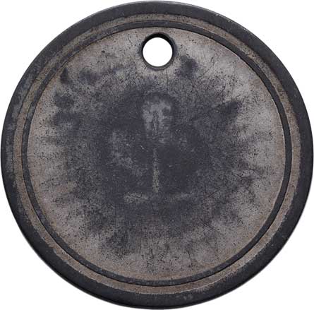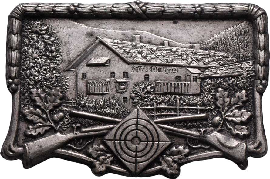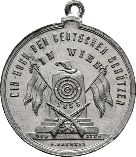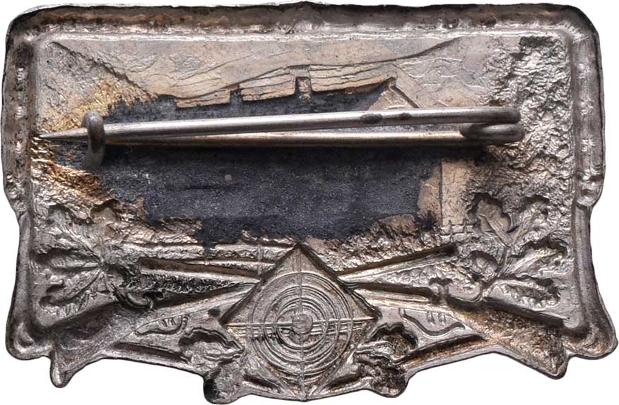 nápis/ terč, prapory, pušky, dva opisy, Sign.Brunner, cín 33 mm s původním raženým ouškem, nep.rysky |
