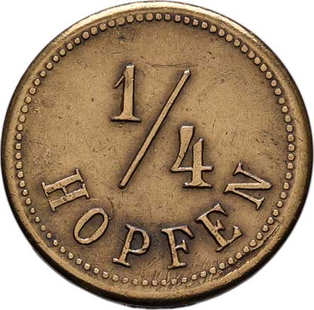 Hopfen, CL.1484, mosaz 25mm, 3.405g, krajový střížek, pěkná patina |