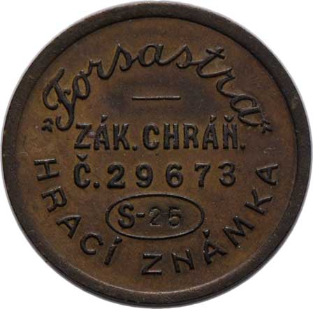 hrací známka, mosaz 25mm, 5.780g, pěkná patina, téměř |