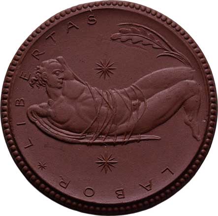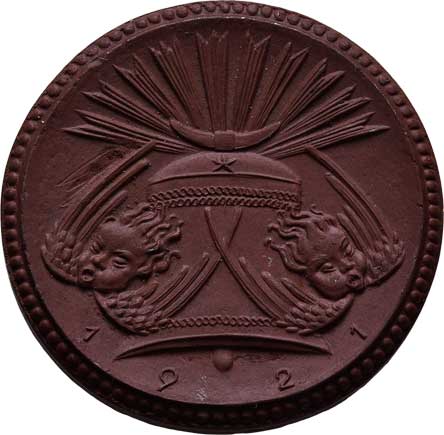 zbraně, zbroj a prapory ve věnci / 7-řádkový nápis ve věnci, Nesign., cín 29 mm s pův.ouškem a stužkou |
