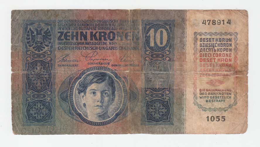 | 2988. | 10 Koruna 1915 - stříhaný kolek, série 1055, BHK.1a,