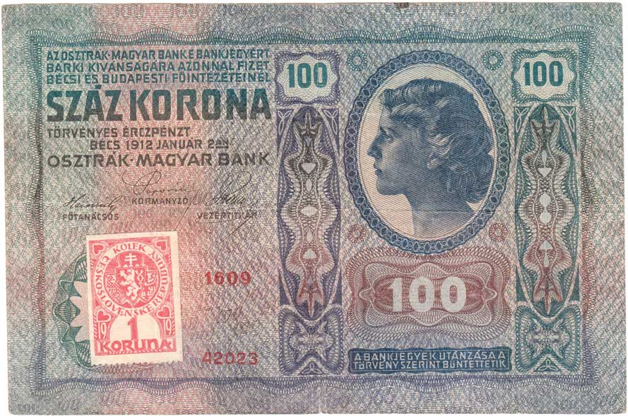 | 2992. | 100 Koruna 1912 - sér.1609 - neobvyklý kolek - zoubk.