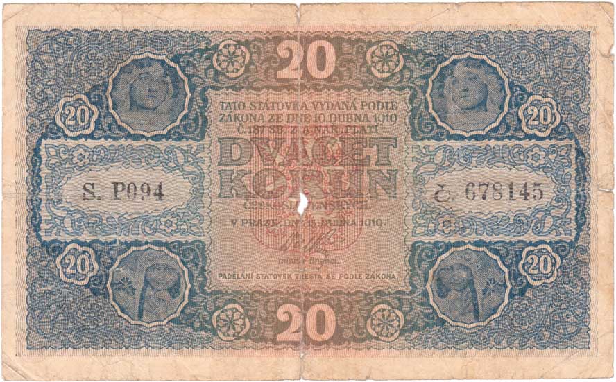 | 2999. | 20 Koruna 1919, série P094, BHK.10a, He.10a,