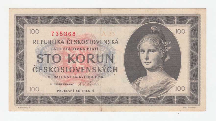 | 3204. | 100 Koruna 1945, série A33, BHK.77a1, He.82a,