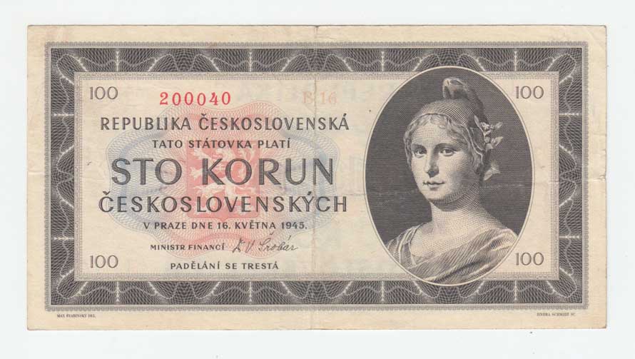 | 3206. | 100 Koruna 1945, série C17, BHK.77b1, He.82b,
