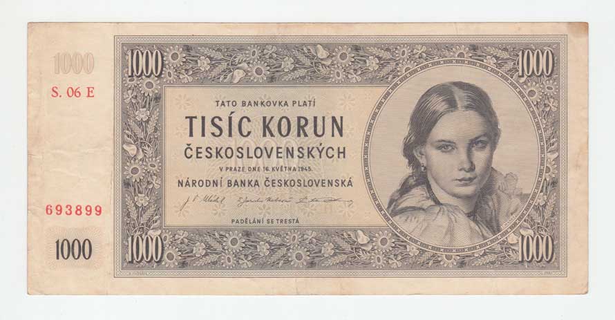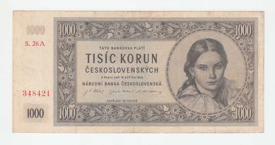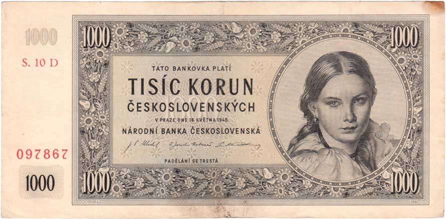 | 3213. | 1000 Koruna 1945, série 01B, 11B, 17B, 22B, BHK.78b,