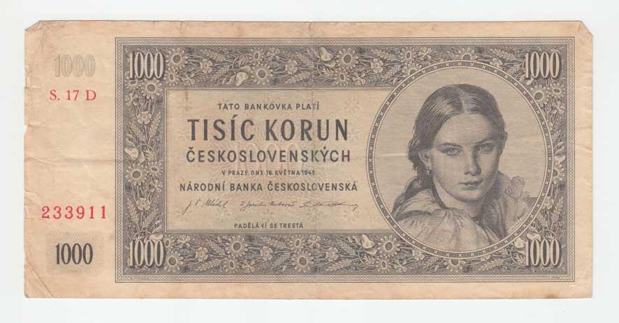 | 3218. | 1000 Koruna 1945, série 17D, BHK.78c2, He.84a,
