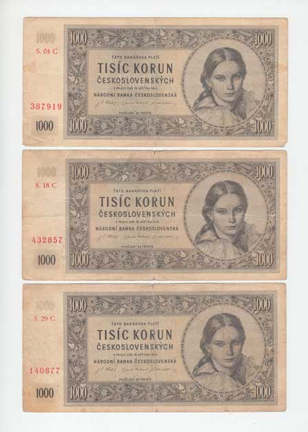 | 3219. | 1000 Koruna 1945, série 04C, 18C, 29C, BHK.78c1,