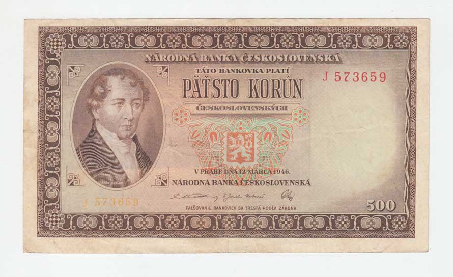 | 3232. | 500 Koruna 1946, série J, BHK.80a, He.87a.s1,