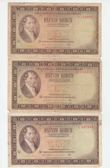 | 3229. | 500 Koruna 1946, série K, BHK.80a, He.87a, "neperf." | 3 | 120,- | 190,- |