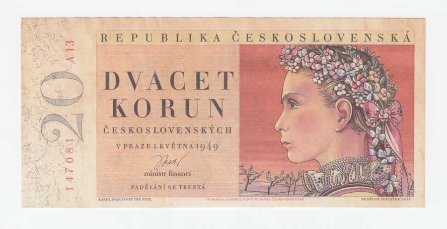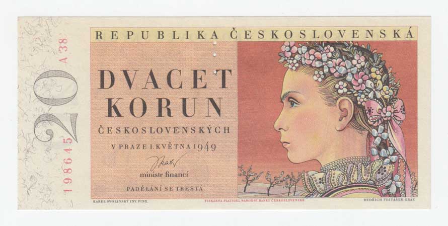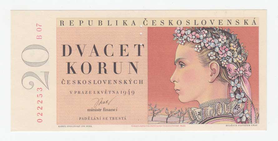| 3244. | 20 Koruna 1949, série A13, BHK.83a, He.90a,
