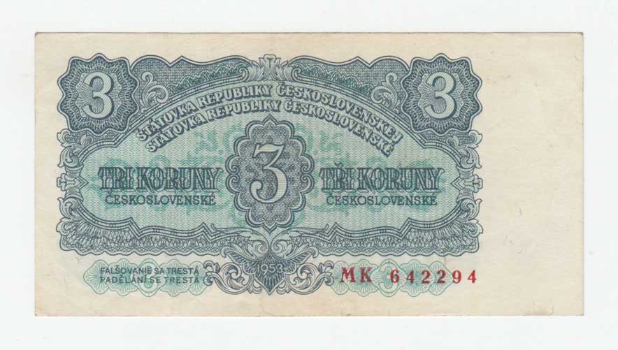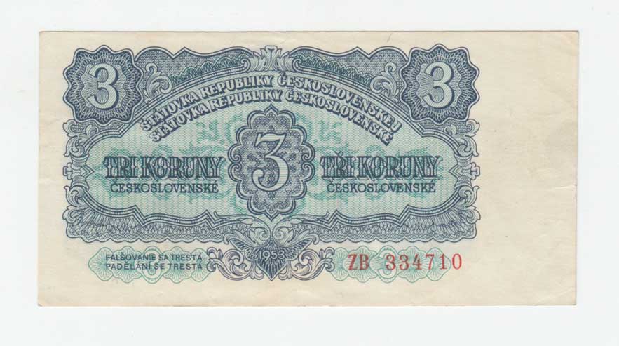 | 3265. | 3 Koruna 1953, série PS (Praha), BHK.87bB, He.99b,
