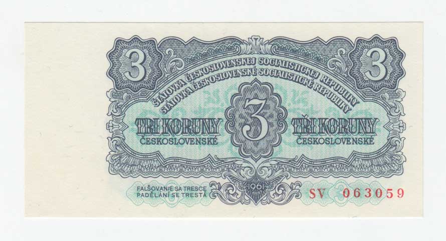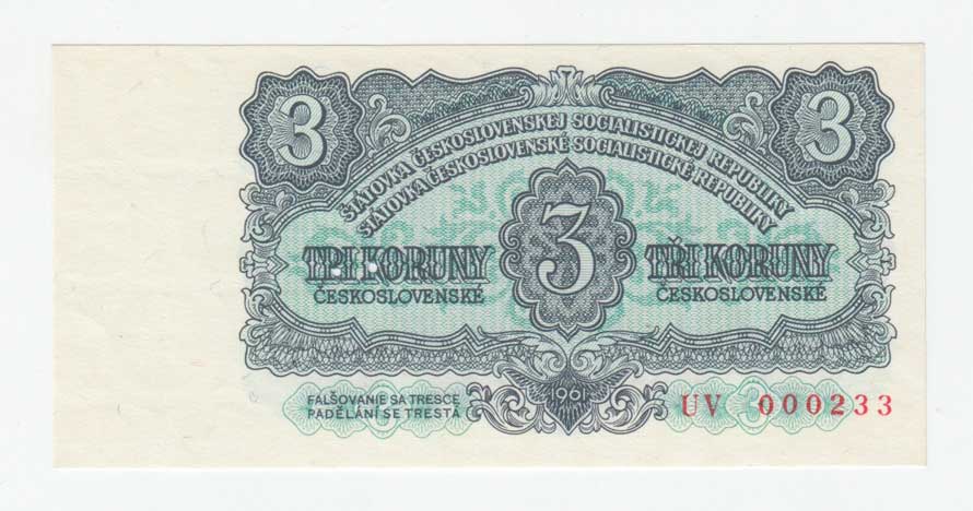 | 3289. | 3 Koruna 1961, série UV, BHK.95B, He.107a.s1,