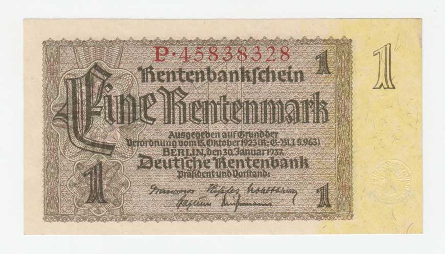 | 3546. | 1 Rentenmarka 1937, Pick.173, Ros.166b - srie P | 1- | 40,- | --.- |