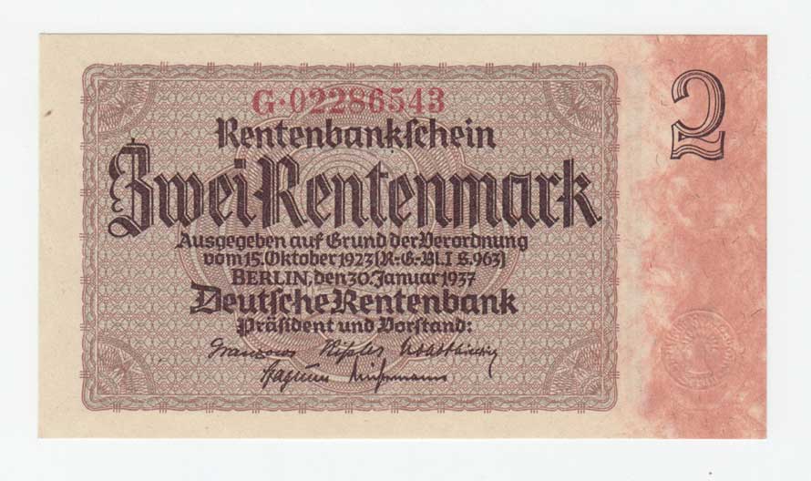 | 3547. | 2 Rentenmarka 1937, Pick.174b, Ros.167b - srie G | 0 | 30,- | --.- |