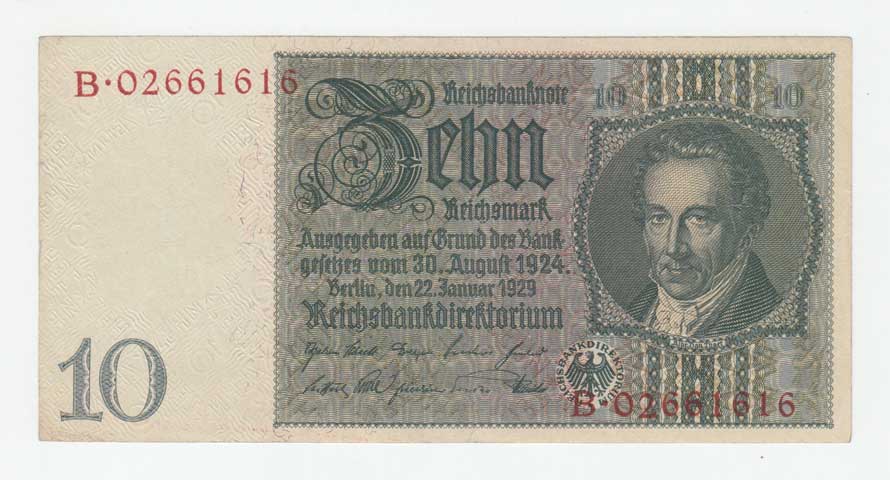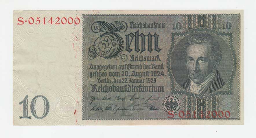 | 3552. | 10 Marka 1929, Pick.180a, Ros.173a - podt.G - sr.F,
