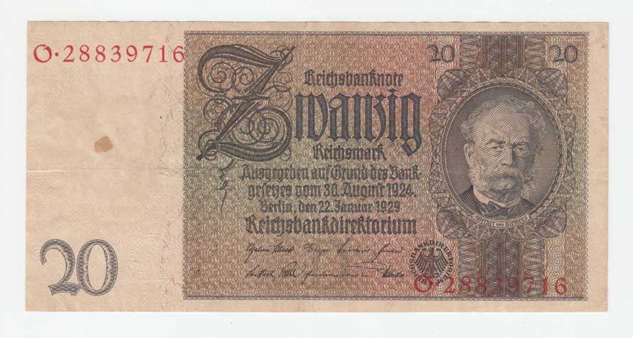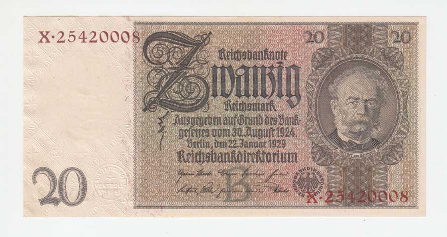 | 3559. | 20 Marka 1929, Pick.181, Ros.174a - podt.D - sr.O,