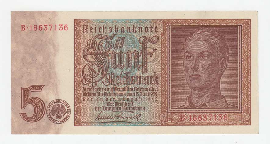 | 3571. | 5 Marka 1942, Pick.186, Ros.179b - podt.P - sr.B