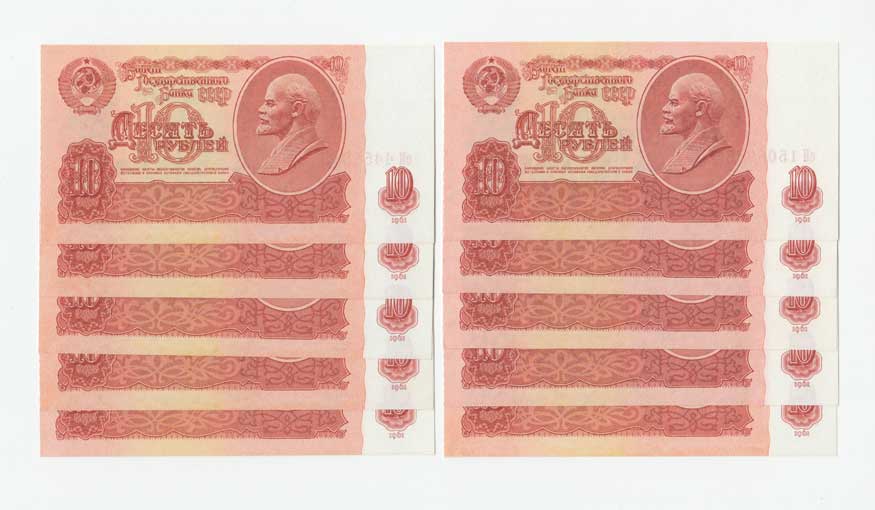 | 3709. | 10 Rubl 1961, Pick.233a, 10ks | N | 50,- | 160,- |