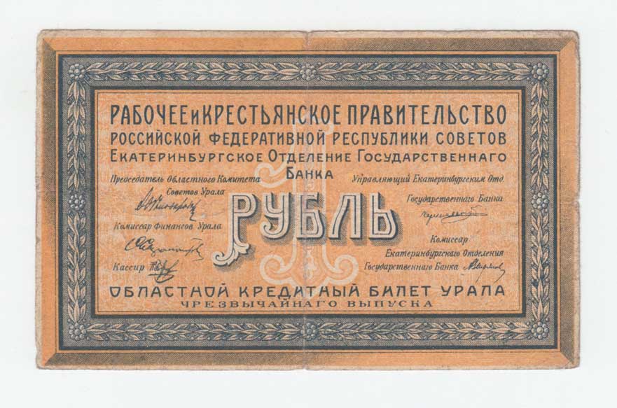 | 3713. | 1 Rubl 1918 - Jekatěrinburg, Pick.S921 | 3+ | 180,- | --.- |