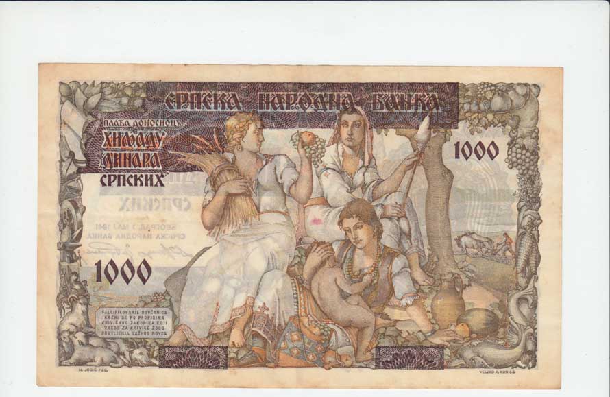 | 3724. | 1000 Dinárů 1941 - přetisk na 500 D., Pick.24, skvr. | 2- | 150,- | 150,- |