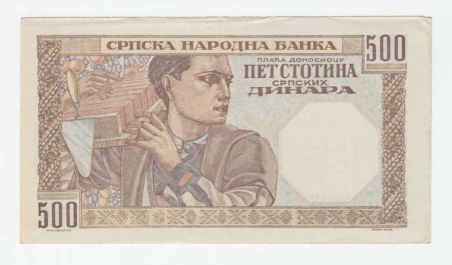 | 3725. | 500 Dinárů 1941, Pick.27b - vodotisk "hlava ženy