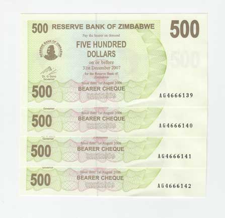 | 3748. | 500 Dollars 1.8.2006, Pick.43, čtyři následující