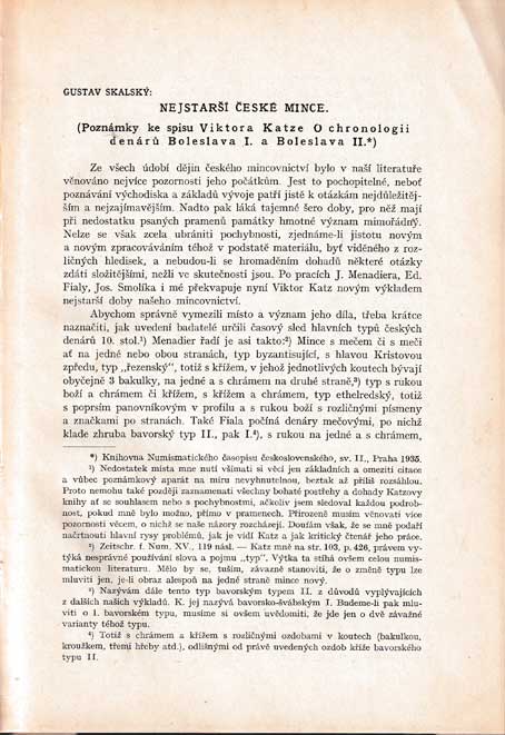 | 3793. | Skalský Gustav : Nejstarší české mince, Katz Viktor :