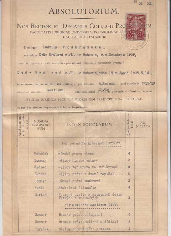 | 3811. | Praha 1933 - Ludmila Podhradská - diplom Právnické