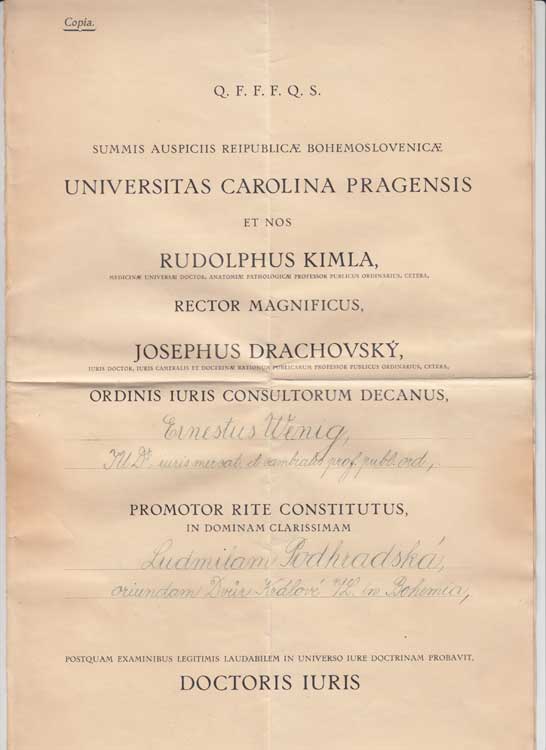 fakulty Karlovy university, podpis JUDr.Wenig, dobře |