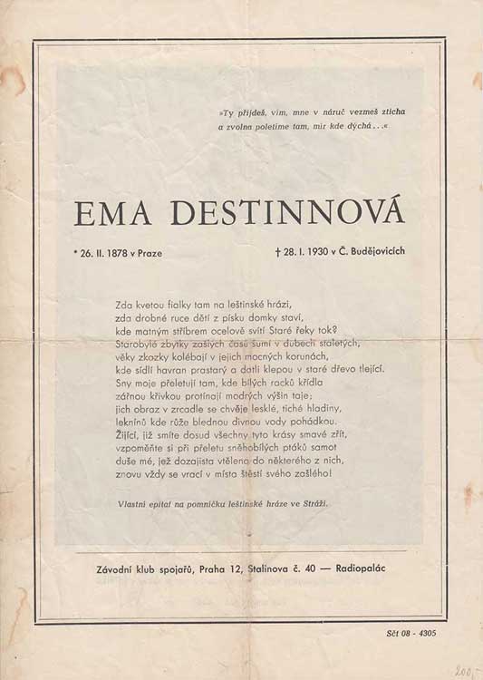 | 3817. | Ema Destinová - 28.ledna 1930, 2x přeložené, skvrnky,