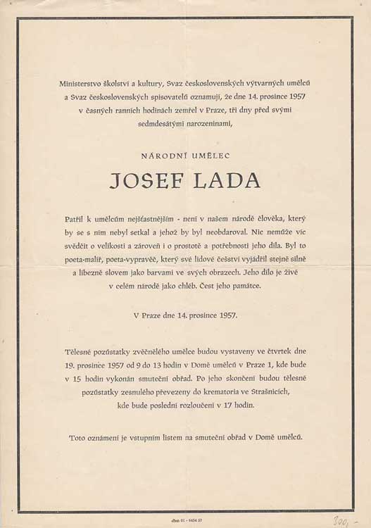 | 3819. | Josef Lada - 14.prosince 1957, 2x přeložené, krásně | zach. | 150,- | --.- |